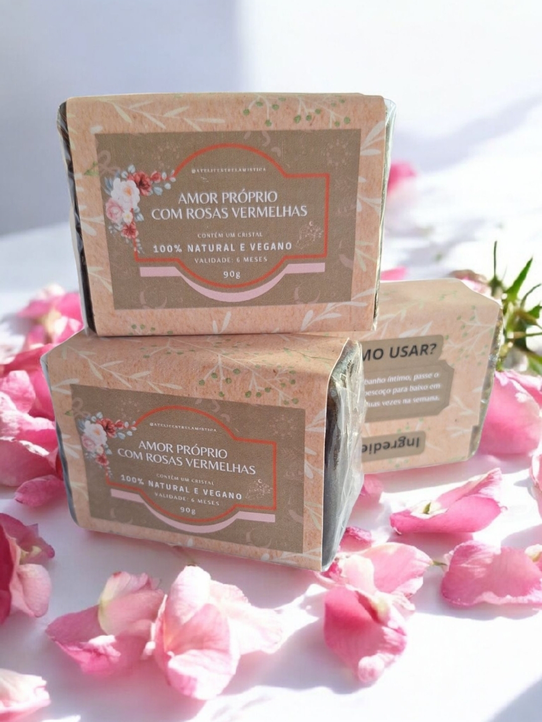 O sabonete do amor é produzido com ingredientes 100% naturais e é vegano, garantindo que você possa cuidar de si mesmo(a) e do mundo ao seu redor. Além disso, cada sabonete contém uma pedra de proteção no seu interior, que pode ser mantida e utilizada depois que o sabonete for totalmente usado.