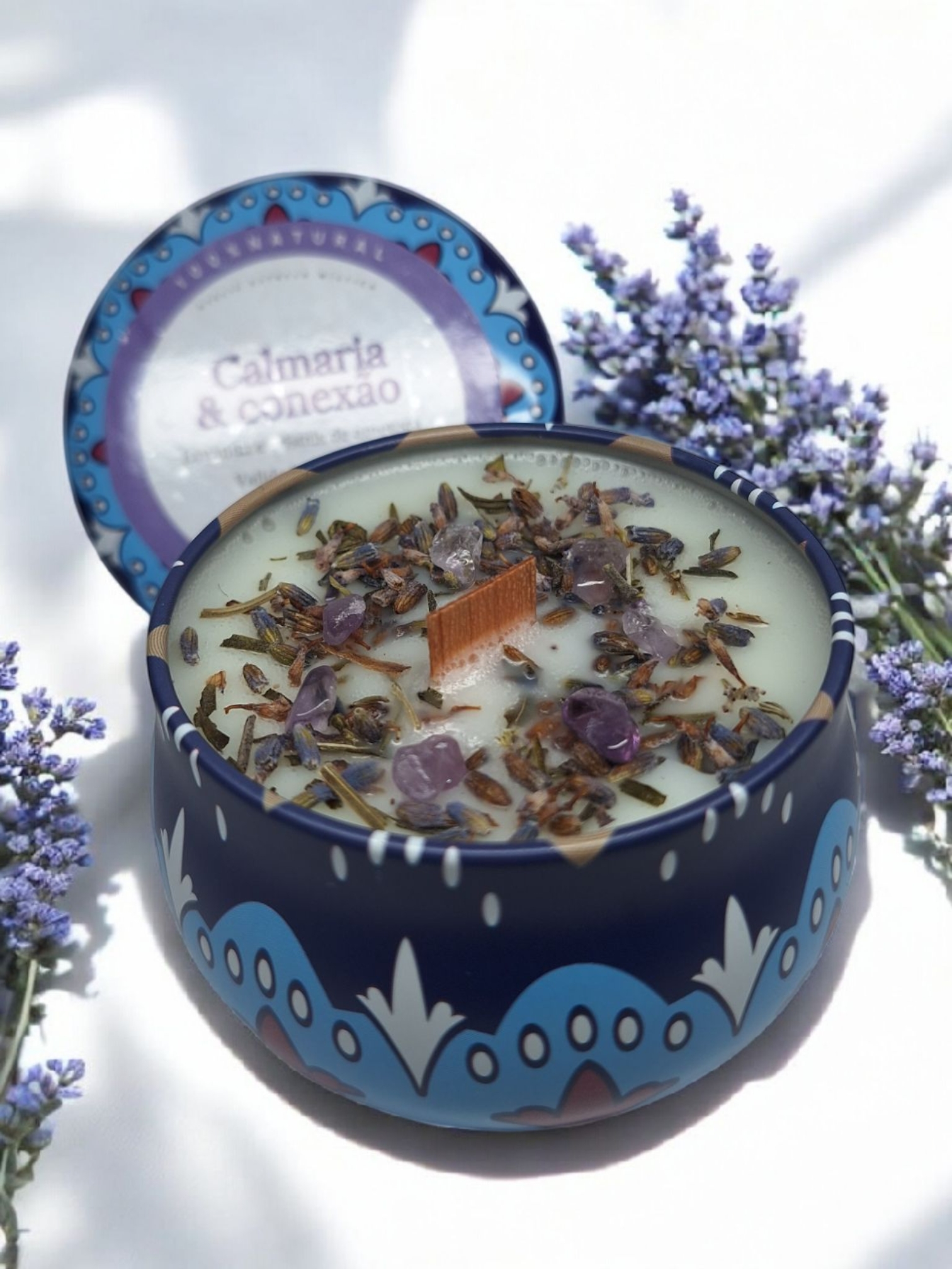 Com lavanda e cristais de ametista, a Vela Calmaria e Conexão é um convite ao relaxamento e à serenidade.🌼✨